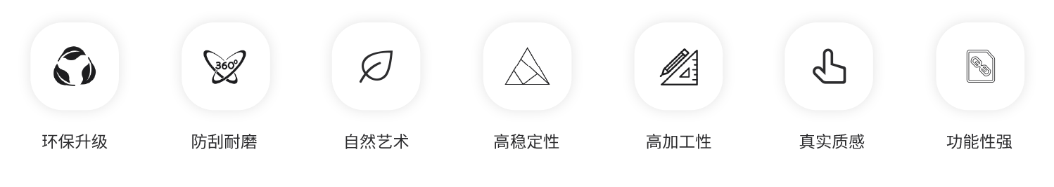 九云向全屋定制始终秉承着“严选全球高标准的装饰面材”的理念,致力于为消费者提供艺术功能性俱佳的装饰面材。在甄选材料的过程中特别注重健康环保和艺术功能性,精选了包括PVC装饰膜、PET装饰膜、PP装饰膜、三聚氰胺纸、金属饰面、科技木皮在内的多种优质装饰面材。